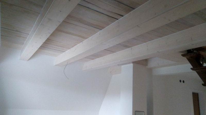 Nachher: Dachgeschossausbau, sichtbare Holzkonstruktion nach Anstrich und Malerarbeiten