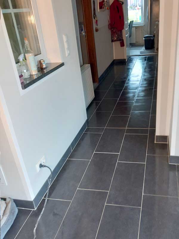 Feinsteinzeug im Großformat verlegt Flur Wohnhaus