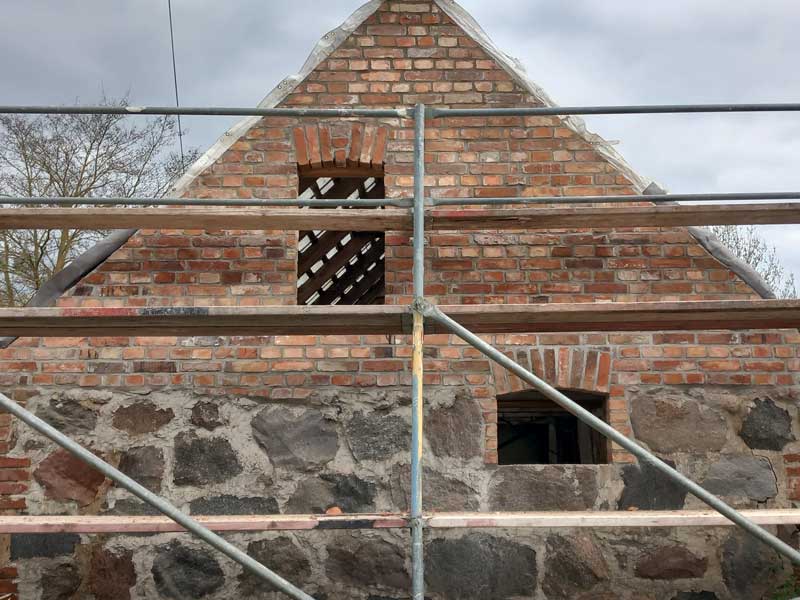 Verfugearbeiten altes Feldsteinmauerwerk, Herstellung eines Blindfensters