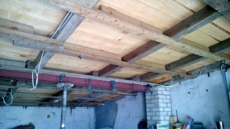 Vorher: Garagendecke als Holzbalkendecke mit eingezogenem Stahlträger