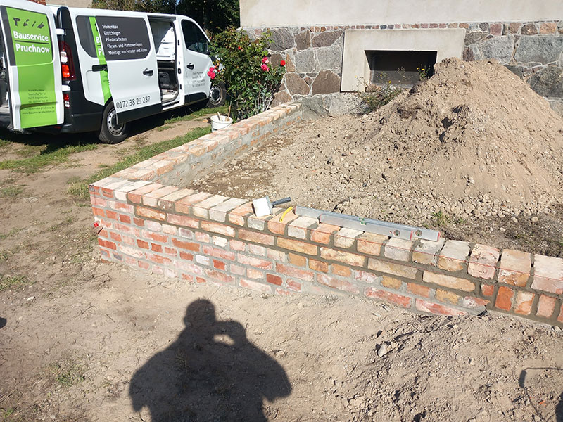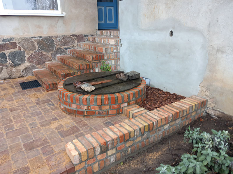 Herstellen einer Sitzbank aus Granit und Innenwand mit Backstein verkleidet