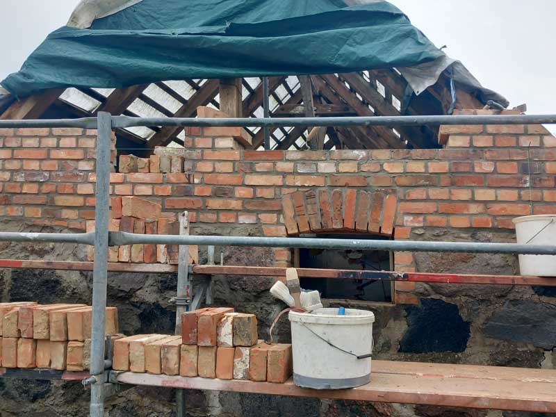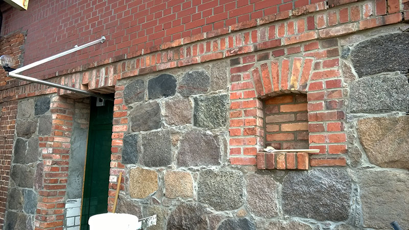 Verfugearbeiten altes Feldsteinmauerwerk, Herstellung eines Blindfensters