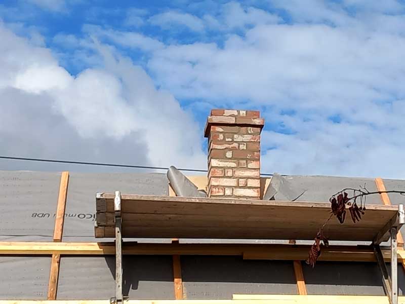 Nachher: verputzter Schornstein mit Lehmputz und Anschluß für einen Kamin