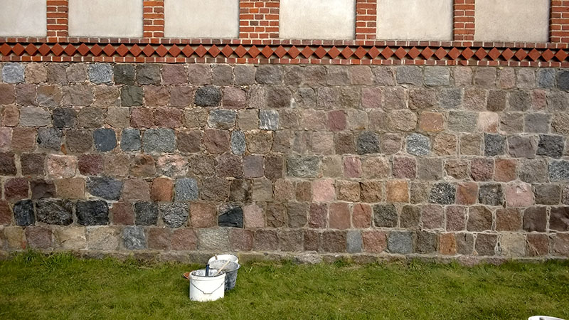 Detailansicht neu verfugtes Feldsteinmauerwerk