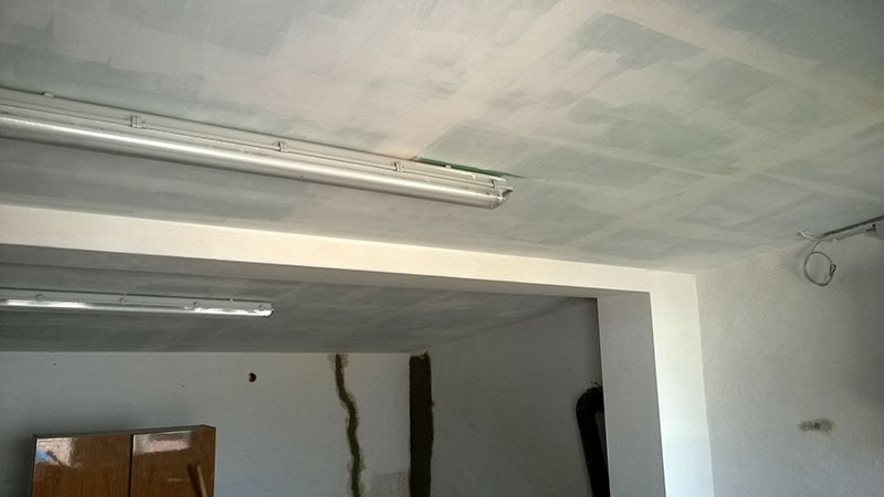 Nachher: Garagendecke mit Gipskarton verkleidet nach erstem Anstrich
